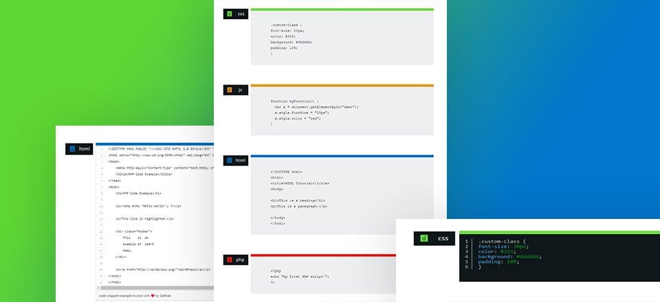 Here is a sneak peek of the code snippet designs possible in this tutorial.