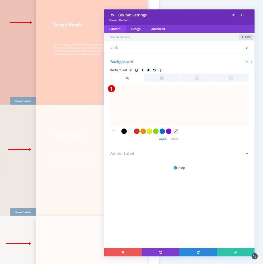 Then, open the column 1 settings and apply a background color of your choice.