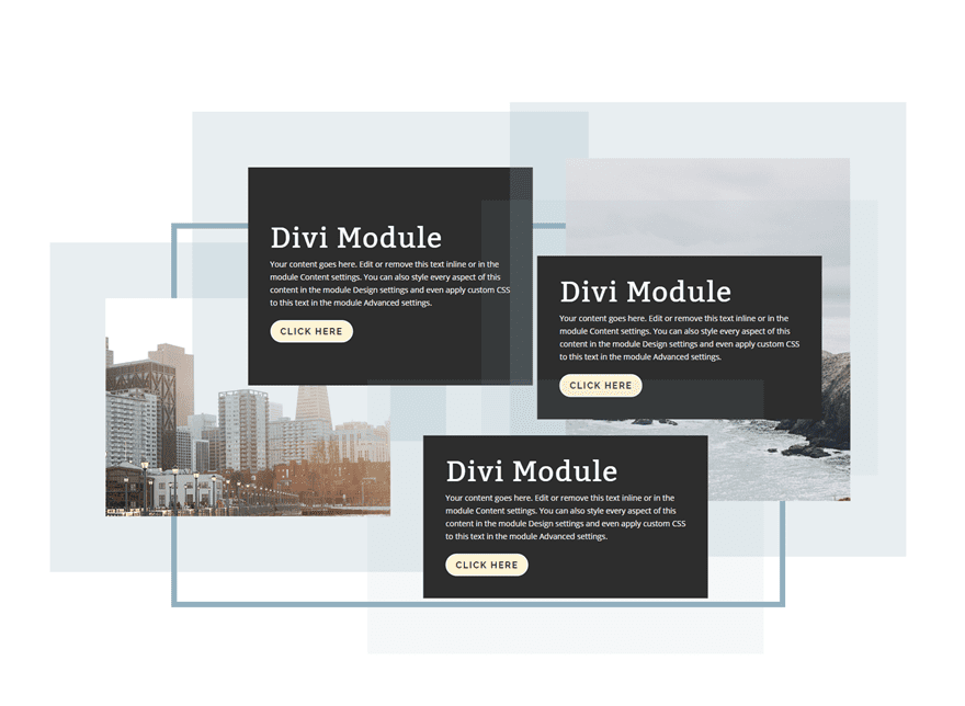 What is cool about this design is that it allows you can easily change the number of modules, colors, and spacing for new designs. And you can stagger Divi columns and modules in various positions as well.