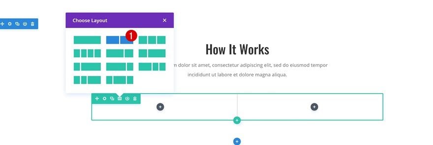 Right below the row you’ve just placed in your section, add another one with the following column structure:
