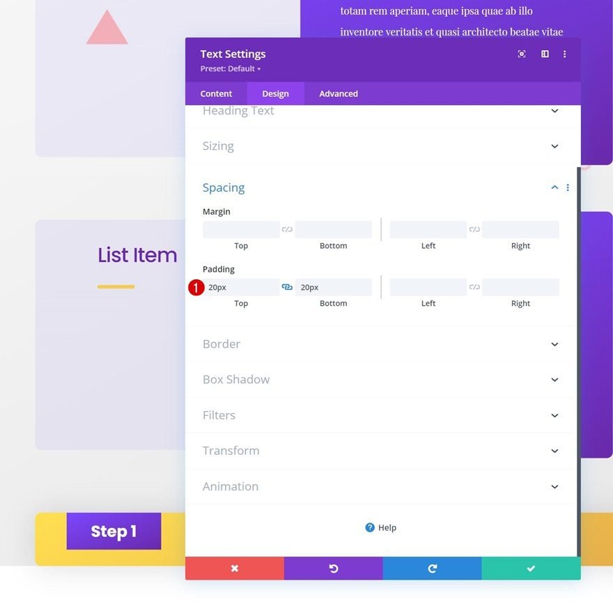 Move on to the module’s design tab and style the H2 text settings as follows: