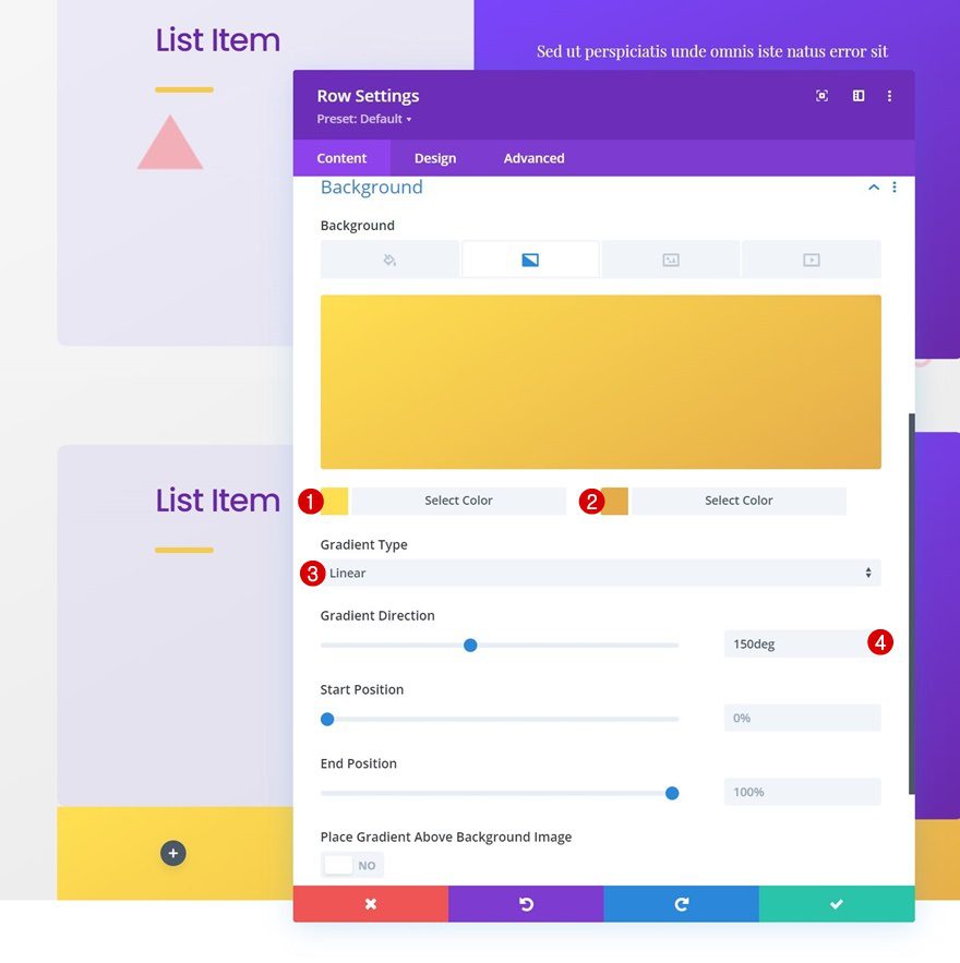 Start by adding a new section to the page you’re working on. Open that section’s settings and apply a gradient background: