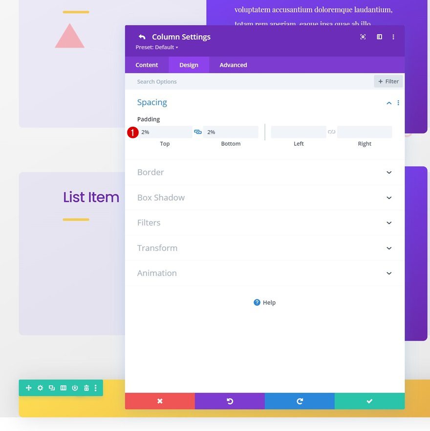 Next, open the column 2 settings and use some custom top and bottom padding.