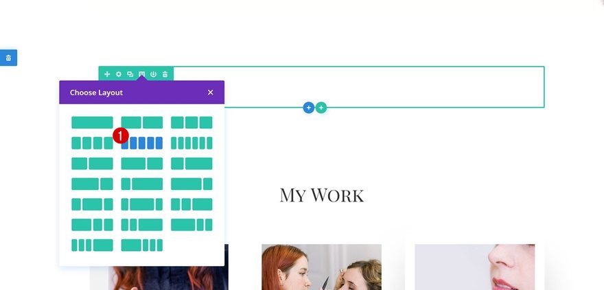 Open the Makeup Artist Layout Pack’s landing page using Divi’s Visual Builder. Then, add a new regular section right below the hero section: