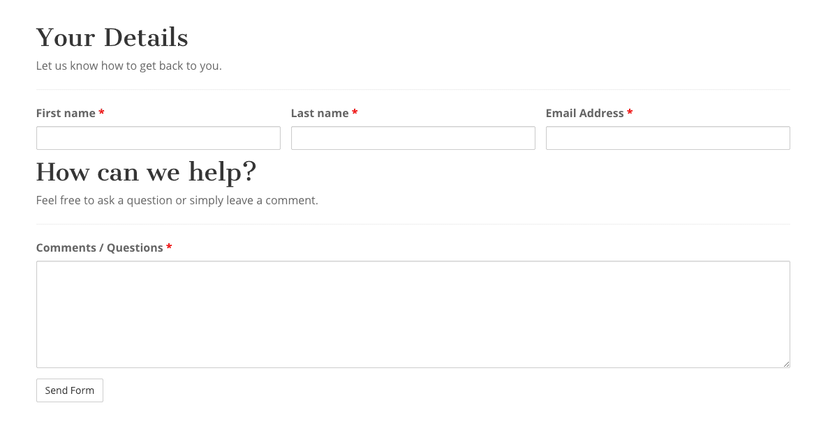 This is what the Divi contact form looks like before any styling or module settings are applied: