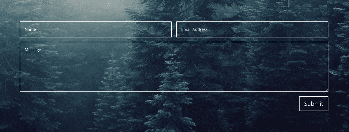 The first is really popular, it uses a background image with transparent form fields for a see-thru effect, I’m placing the background image area in the Divi section. Keep in mind you’ll want to consider readability when picking your image, a darker image would be best in this case:
