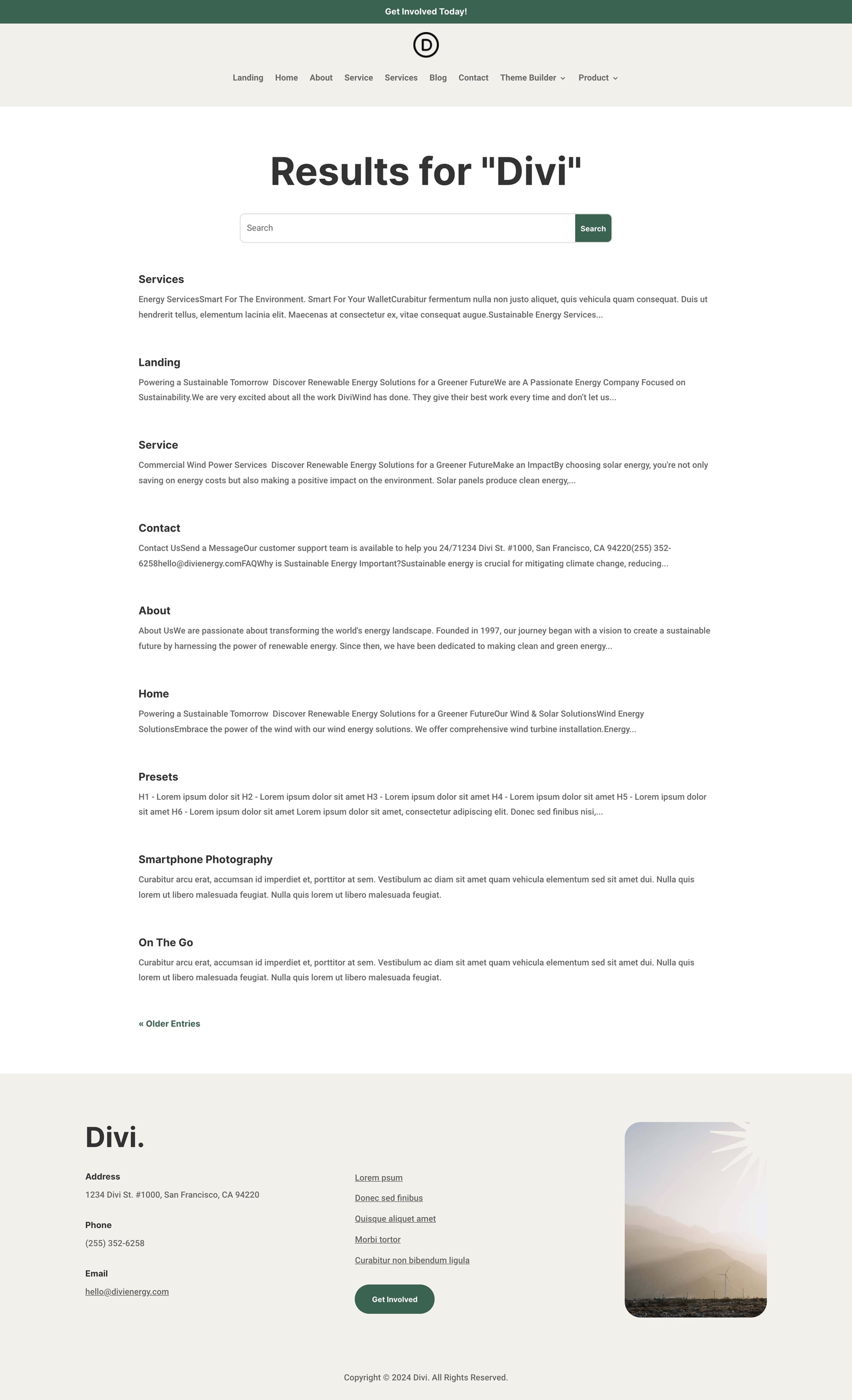 – 10 Premade templates for the matching Sustainable Energy Layout Pack for Divi (including ecommerce, header, footer, and category designs)