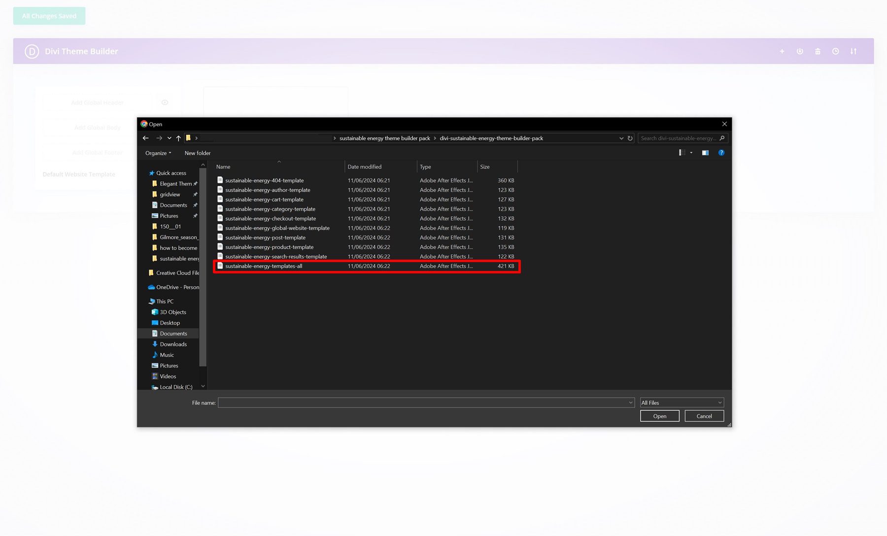 Save Divi Theme Builder Changes