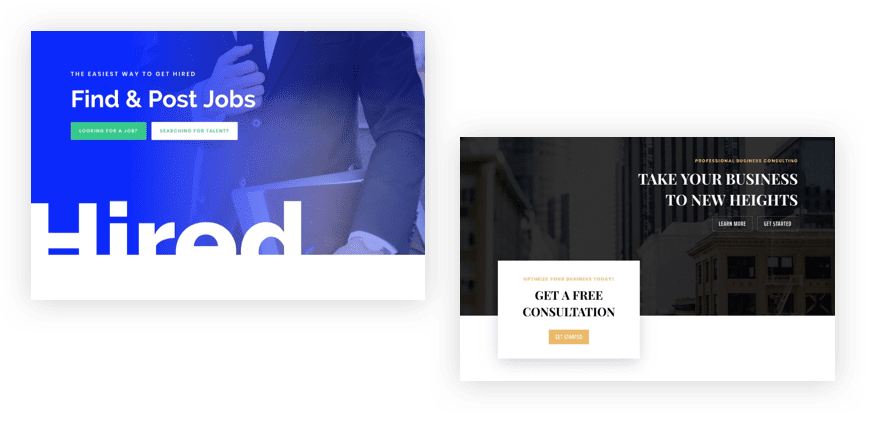 This same technique is used on the Business Consultant Landing page layout to bring a CTA up into the header.