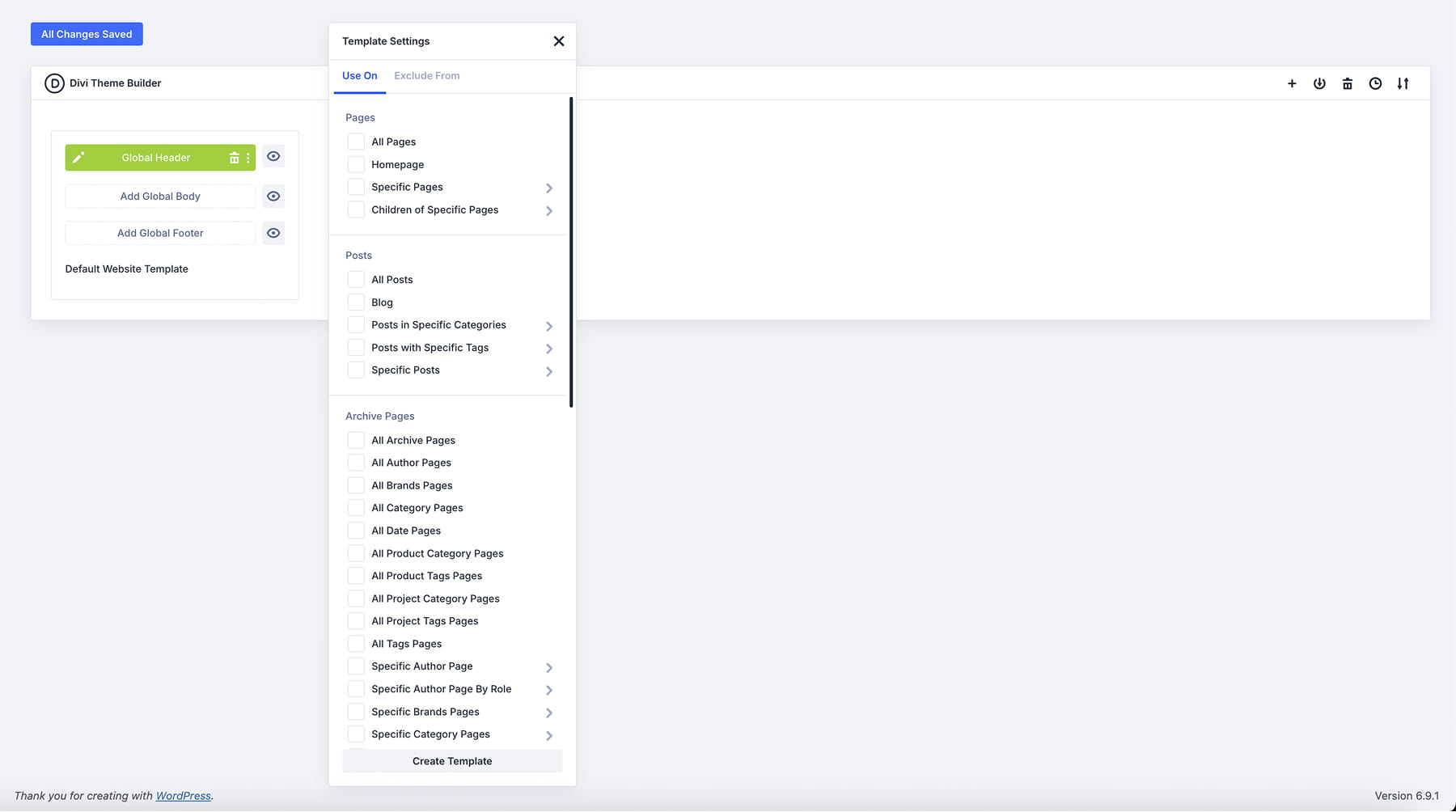 Then, check the “All Posts” box and create a Template.