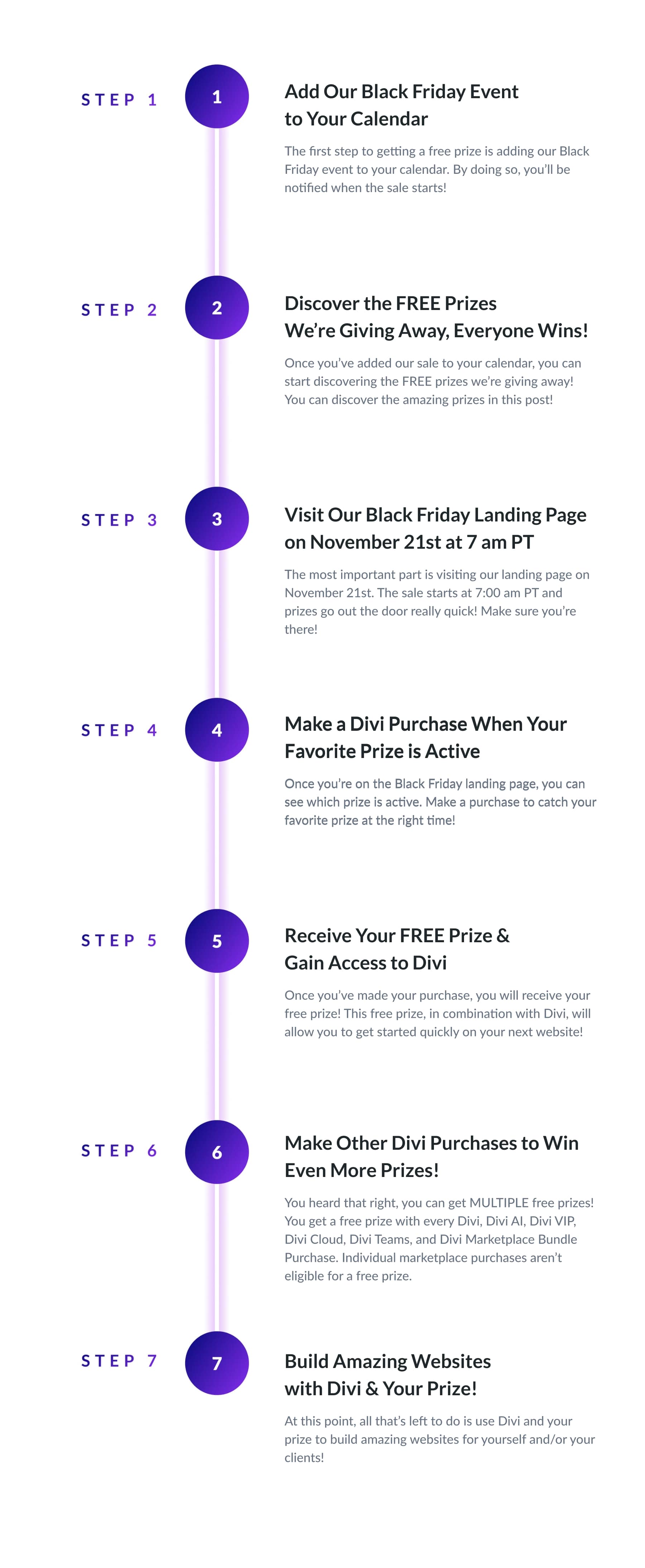 The sale starts early this year on November 21stΒ at 7 a.m. PT. Add it to your calendar today so you donβt forget! Weβre also giving away a free iMac and fifty free Divi AI memberships while we count down to the big day, so be sure to enter the raffle before the sale begins. π