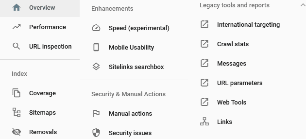 The version of the Google Search Console that we’re working through in this article is the new, updated version. There is a Legacy version that still has a few tools that haven’t been converted and those are the ones listed here. In general, these are for advanced users who need very specific tools to perform very specific tasks. The reason they have not been converted to the new console is that they have been improved (such as Messages) but some still like the old UI or not useful to enough people to warrant a change but still hold value to a segment of the userbase (such as International Targeting and Crawl Stats).