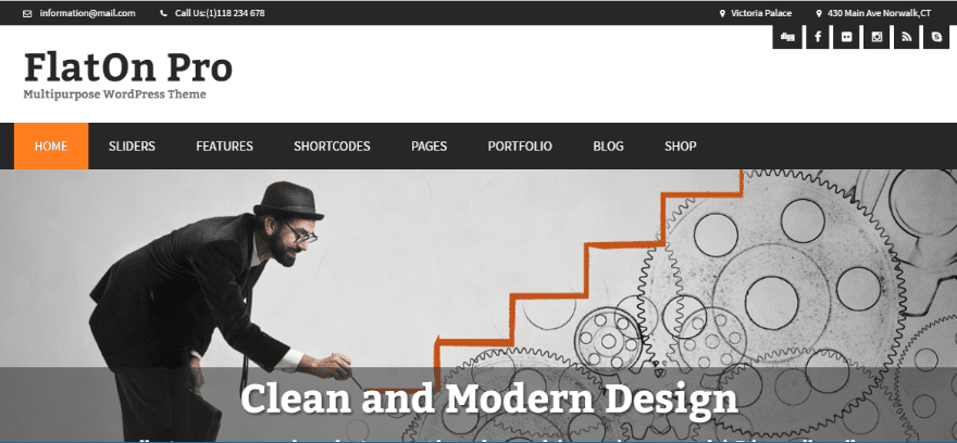 FlatOn is a free and premium flat design that’s great for multipurpose use. The pro version comes with a variety of page templates, Polylang support, and a number of other helpful features.