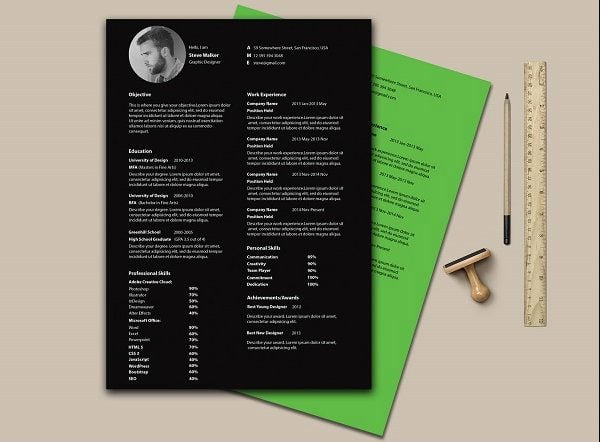 Mint Resume Design (1), Dark Theme Resume Template (2) & Graphics Fuel Resume Template (9) looks great.