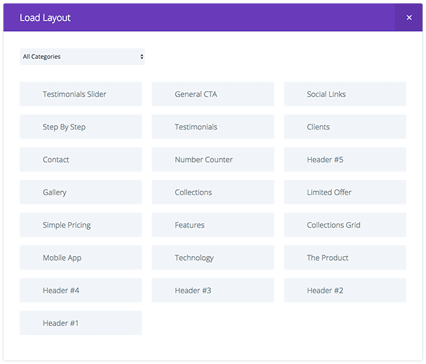 Not only is the layout pack available in the form of 23 individual sections, it has also been combined into a single βmaster layout.β This single layout contains all 23 components, each of which can be enabled or disabled to your liking. The master layout can be added using the βAdd From Libraryβ button at the top of the Divi Builder interface.