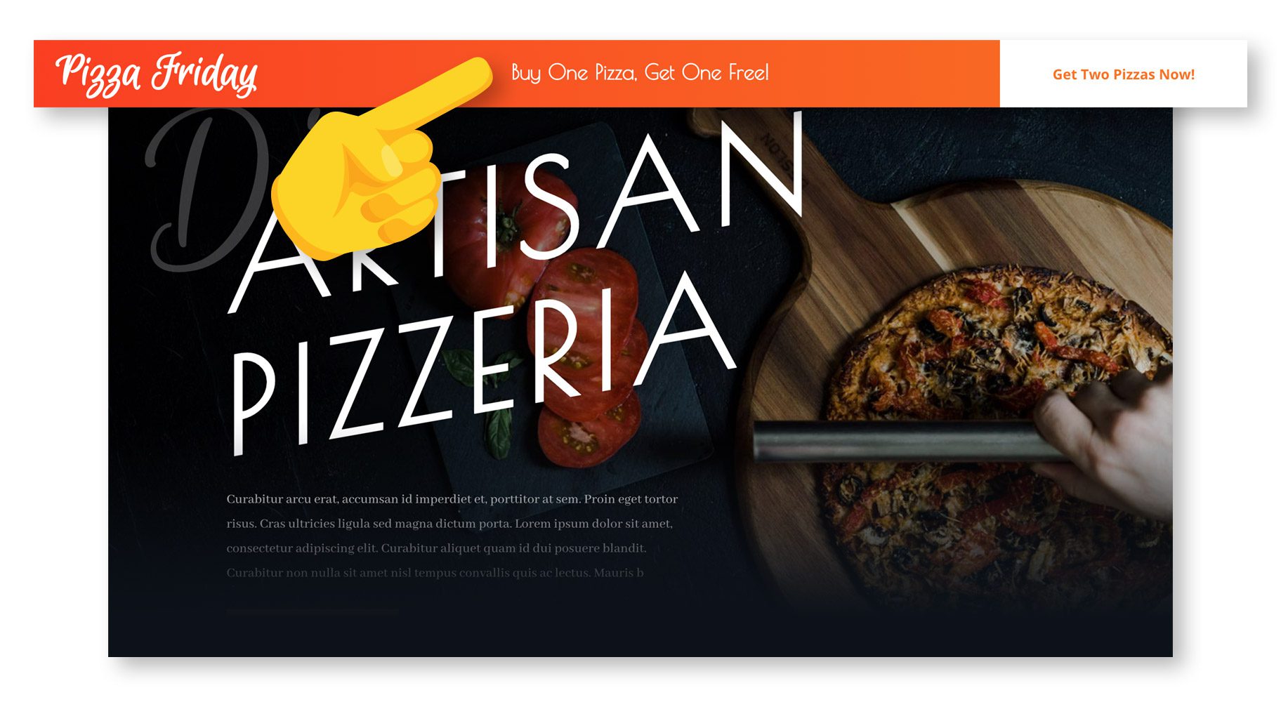 You can use Diviโs condition options to display elements based on date and time, and even create recurring content schedules. In this example, I am building a website for a Pizzeria. The Pizzeria likes to celebrate “Pizza Fridays” by running a โbuy one Pizza, get one freeโ promotion every Friday, and they want everyone who visits the website on Fridays to know about it.