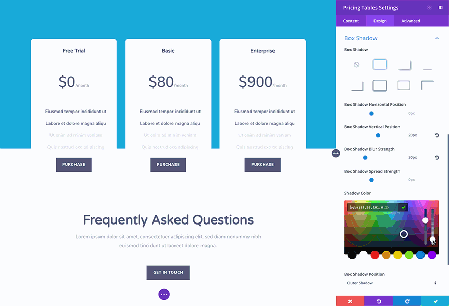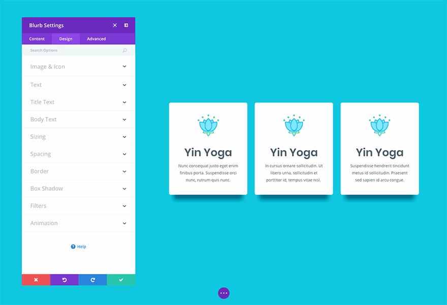 Not only can individual options be transferred, so can entire option groups! Let’s say you are working on a new Box Shadow style and a new Button style for your page. These two option groups contain dozens of settings and you can spend a lot of time perfecting them. Taking those dozens of carefully crafted button style and box shadow options and transferring each of those options to a variety of different modules could have taken hours of time in the old version of Divi. Those days are over! If you want to take your button design and use it on another module, simply right click on the button option group and copy it! You can then transfer those buttons styles to any module that has a button. Same goes from box shadows. Just point, click and use that custom box shadow anywhere.