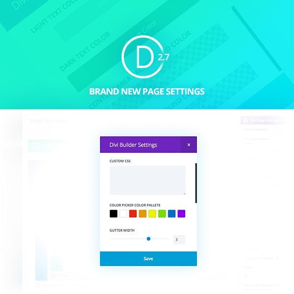 Divi 2.7 will introduce a new set of page settings to the Divi Builder. These settings affect the entire page you are working with, unlike module/row/sections settings (which affect only each individual element). This means you will be able to adjust certain design options for the entire page, instead of having to edit every single module.