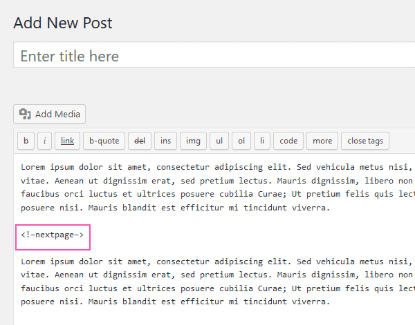 To split a single post into multiple pages, you need to access the text editor β found to the top-right of the visual editor.