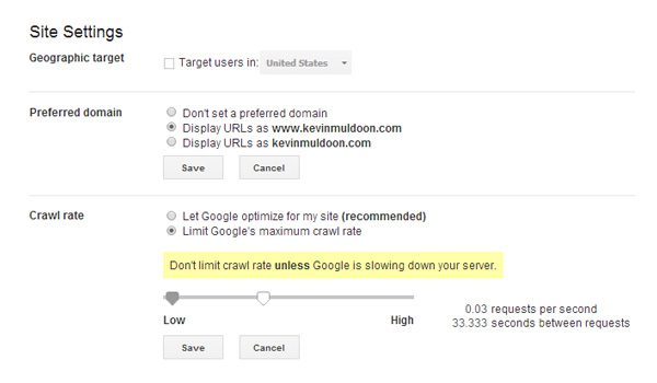 Note that Google does not support the crawl delay directive. To change the crawl rate of Google’s spiders, you need to log in to Google Webmaster Tools and click on Site Settings.