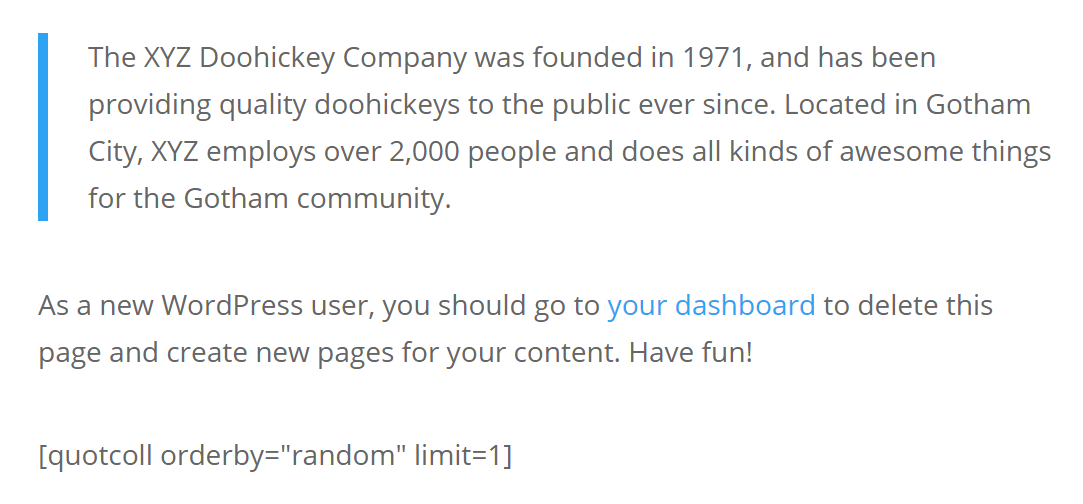 Thatβs it! Save your changes, and your random quotes section will now appear on the front end of your site: