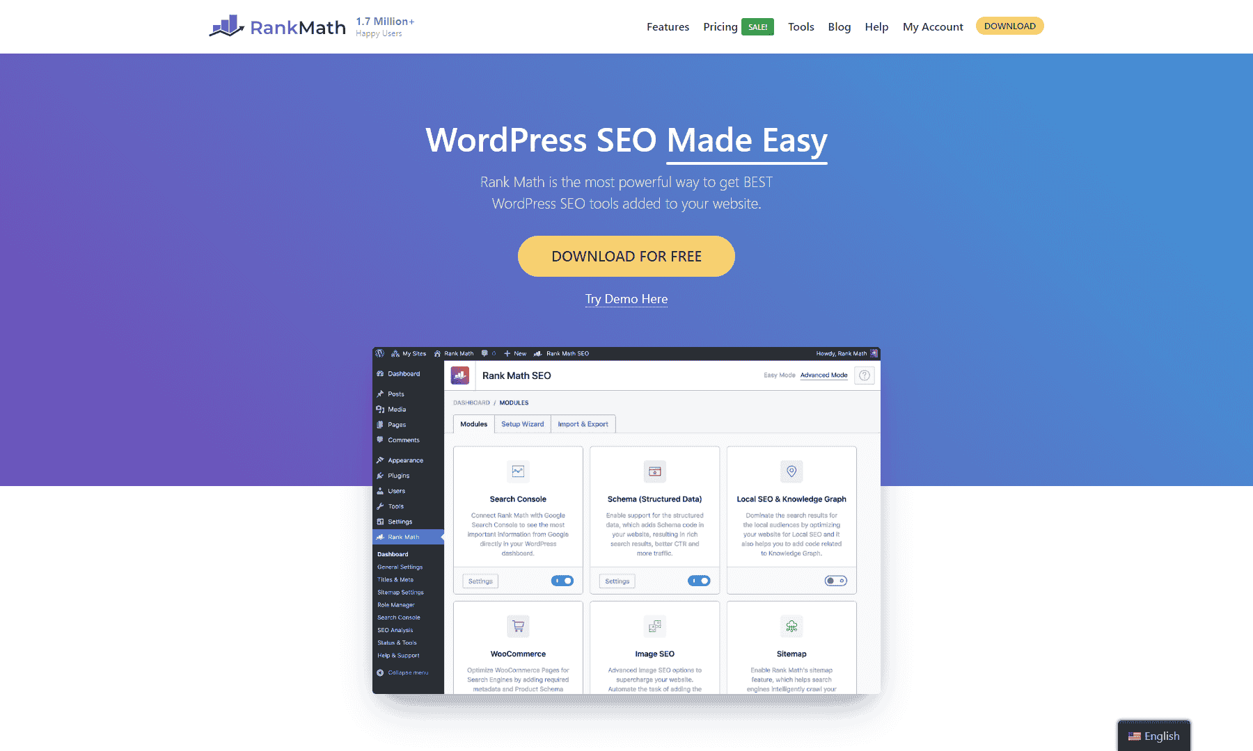 Rank Math earned its spot on our list for its exceptional balance of powerful features and user accessibility. This comprehensive SEO tool caters to both novices and SEO veterans. It’s one of the best tools for continuous updates and feature releases.