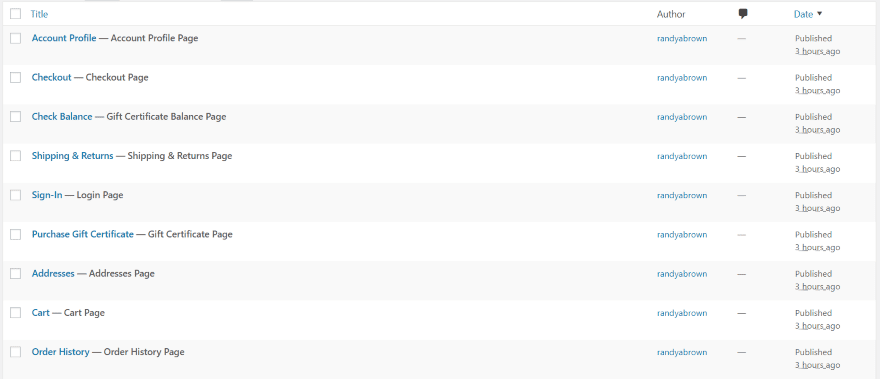 All of the pages your store needs are created for you. You can select different pages in the settings or just leave all of the pages at default. These are standard WordPress pages with shortcodes already added or Gutenberg pages with BigCommerce blocks.