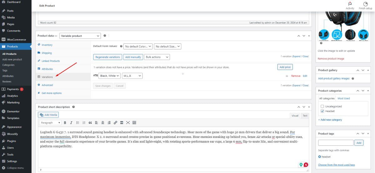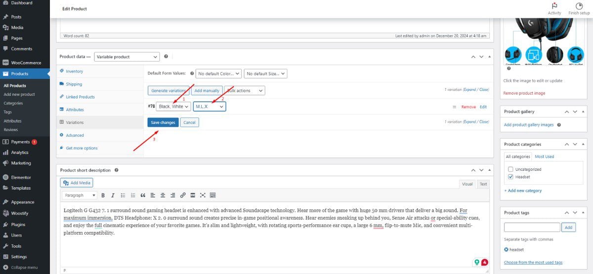 You can tweak some settings or leave them as they are, then upload a new variable product or edit the existing one. Since you know how to create attributes and upload a variable product to your WooCommerce store, we won’t repeat that process.