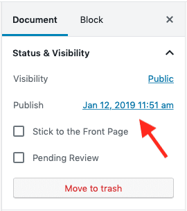 Click the date and time to the right of Publish, which is on the right side of the screen.