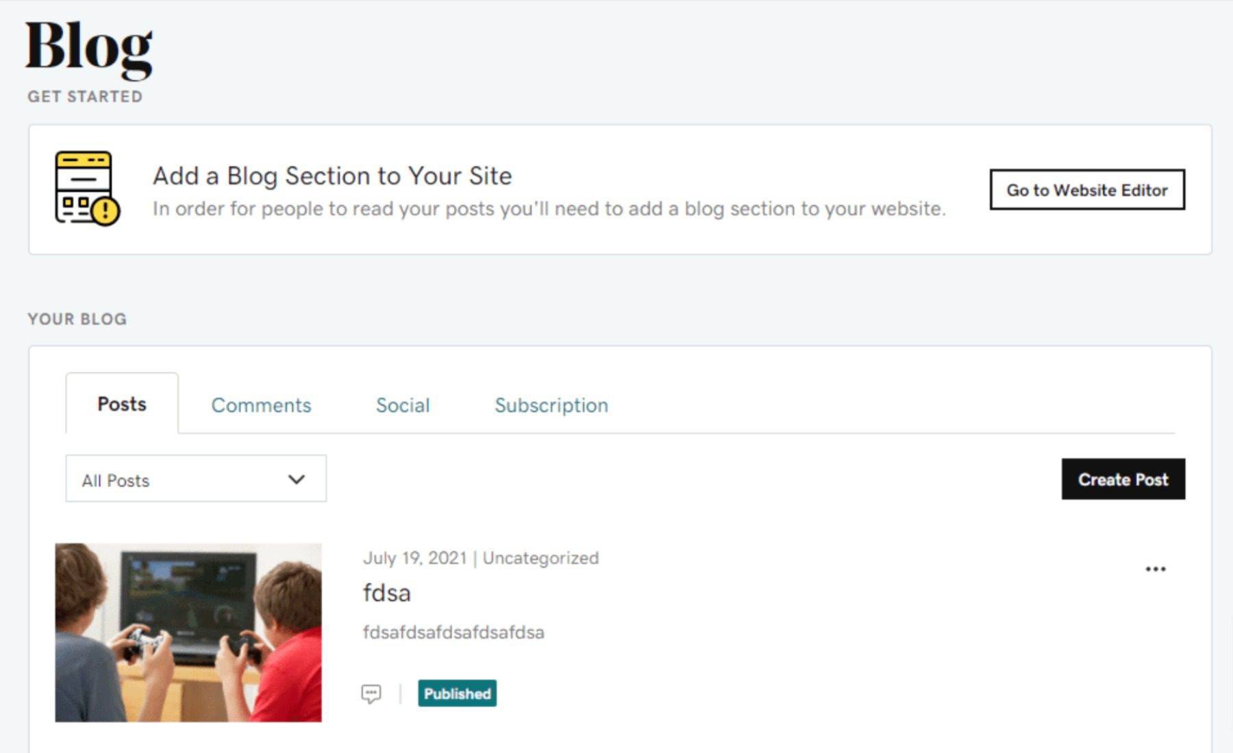 To do so, you must add a new blank page, then add a new blog section from the menu. Then navigate back to the dashboard and clickΒ Create Post to start. The editor itself is basic but functional. The elements you can work with are images, dividers, and text. You can categorize and add a featured image, too.
