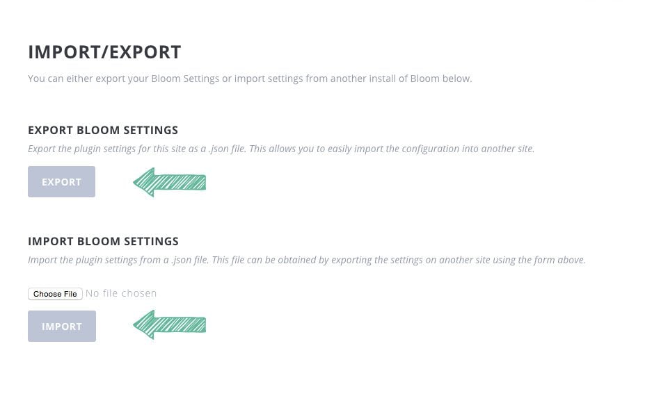 If you have spent a lot of time creating your opt-ins, and you would like to start a new website without having to start the process all over again, then you can simply export them from within the Bloom settings panel and import them into your new website.