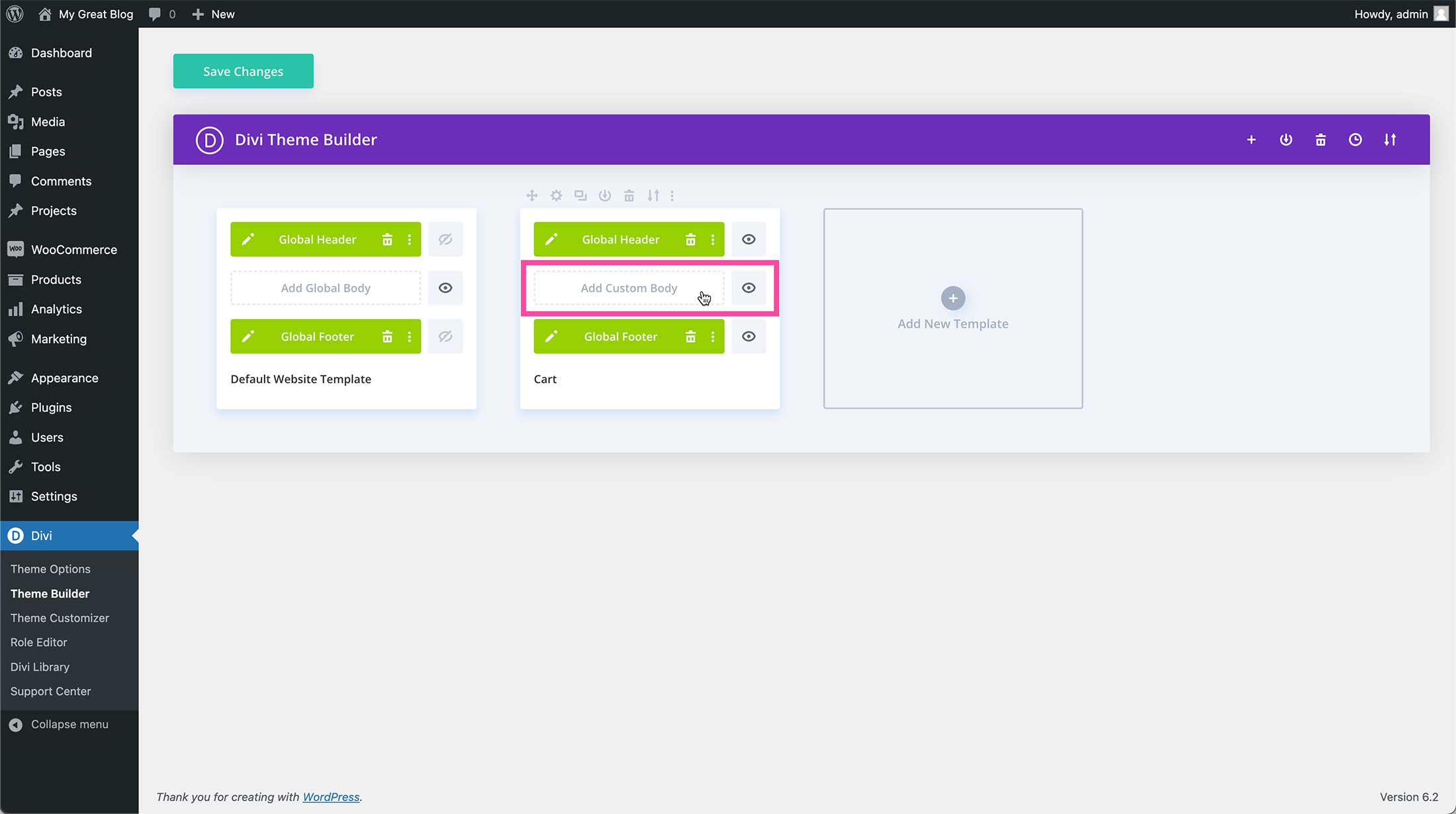 First, we’ll need to create the Cart Page Template. To do so click “Add New Template”.