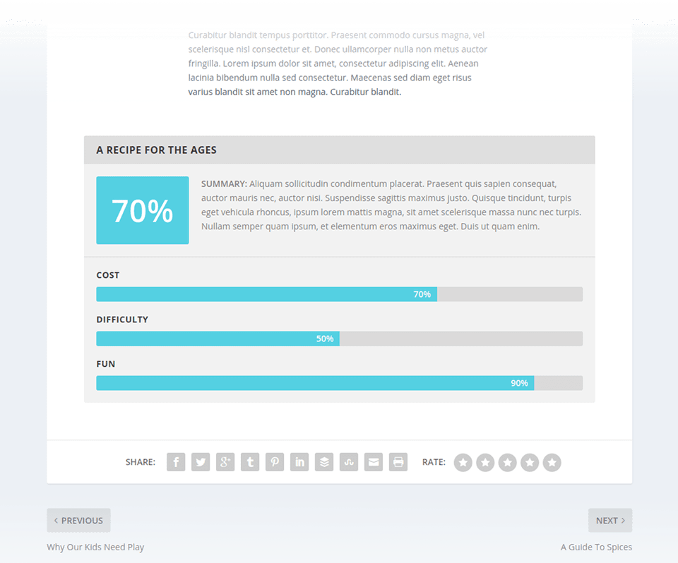 Give your review posts some extra polish using Extra’s custom review system. It includes a built-in User Rating System allowing your site’s users to rate posts as well. This fosters user engagement and provides valuable insight.